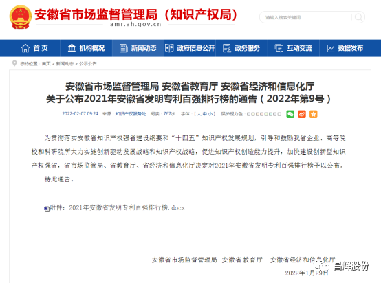 热烈祝贺昌辉股份连续七年入选省发明专利百强榜